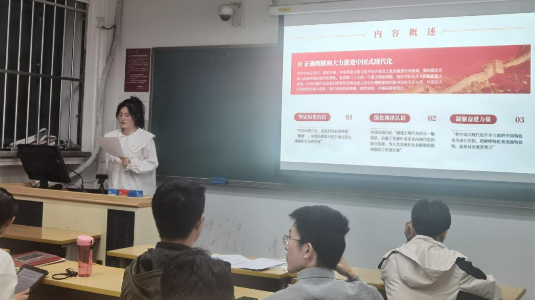 知常明变者赢,守正创新者进。通过本次主题党日活动,支部全体成员进一步深刻领会、准确把握习近平新时代中国特色社会主义思想的世界观和方法论以及贯穿其中的立场观点方法、新时代新征程中国共产党的使命任务、中国式现代化的中国特色、本质要求,激励支部成员扛起“做栋梁”与“当先锋”的责任与使命,牢记嘱托、踔厉奋发、勇毅前行,自觉挺膺担起全面推进中国式现代化的时代重任,争取跑出当代青年的最好成绩。