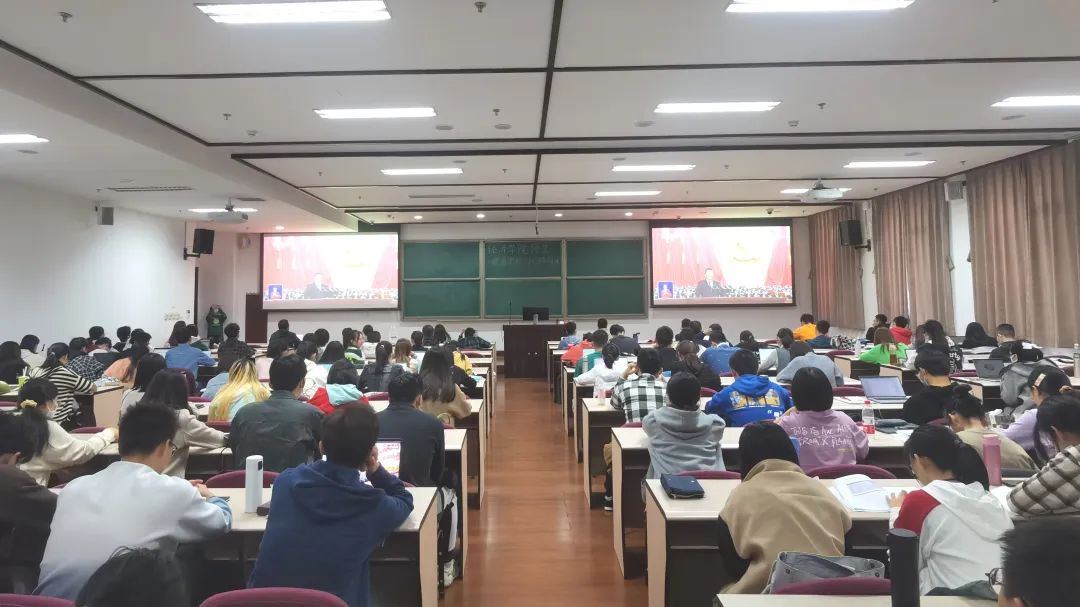 yl6809永利师生在明德主楼728集体观看中国共产党第二十次全国代表大会开幕式直播