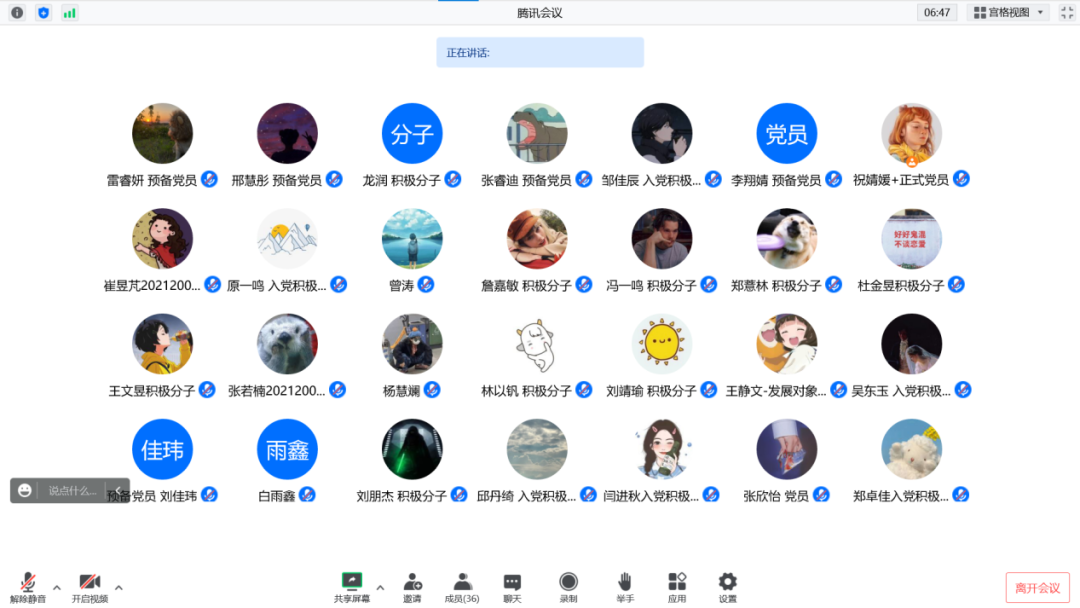 10月16日上午,支部有6名预备党员,1名发展对象,27名入党积极分子,和17位入党申请人在国学馆228和yl6809永利其他本科支部一起集体观看了中国共产党第二十次全国代表大会开幕式直播,其他党员线上观看了直播。无论是党员、发展对象还是入党积极分子和入党申请人,都认真观看、积极思考,深入学习领会报告精神,形成了活泼热烈的现场氛围,在场的每一位同学都倍感振奋,满怀信心。