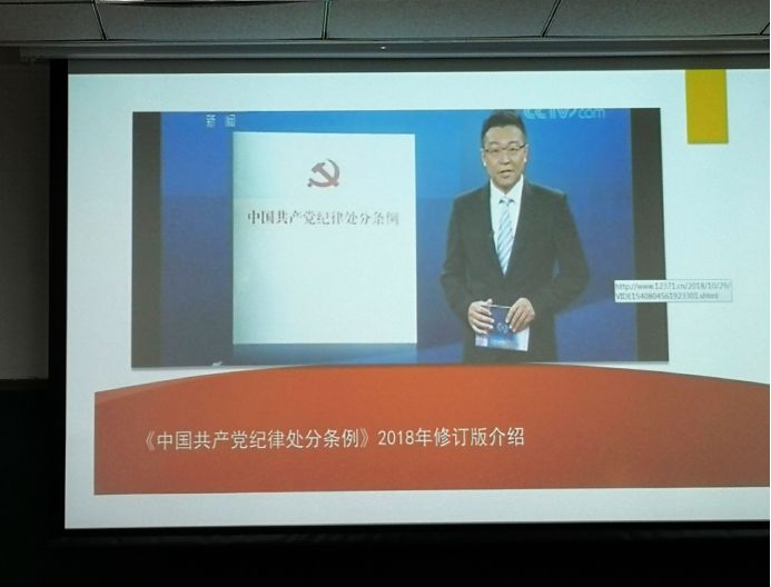 活动当天,党支部书记秦铭徽同志首先带领大家观看有关《条例》的新闻视频,与支部成员共同回顾和学习《条例》要点。