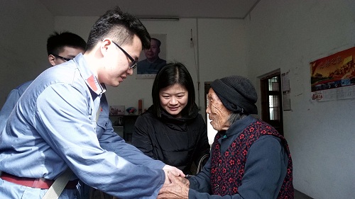 随后,学员们前往坝上村探望了红军先烈袁文才的长女袁长姝奶奶,95岁高龄的她与大儿子同住。尽管行动不便,但袁奶奶思维依然清晰,她与学员们握手、亲切交谈,令大家十分感动。学员们了解到,母子二人现享受国家最低生活保障补助和免费医疗待遇(革命先烈后代),但依靠每月600元的补贴只能勉强度日,而且村里的道路刚刚开始建设,离最近的诊所也还有很长的一段路要走。在入户走访中,学员们深切感受到全面建成小康社会任务的艰巨性,也更加明白实现中华民族伟大复兴需要所有人的共同努力,共产党员在这一过程中更应当发挥出先锋带头和模范作用。