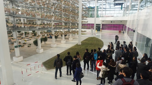 上午11时,师生党员抵达中国北京农业生态谷,就其中的重点农业项目“中粮智慧农场”进行参观学习。师生党员集体观看了中国北京农业生态谷宣传片,观摩了全景模拟沙盘,参观了智慧农业体验馆、垂直农业技术综合馆、都市园艺馆等七个主题温室,师生党员了解到关于科技、生态、环保、节能的新“智慧”,亲身体验了科技农业的魅力。