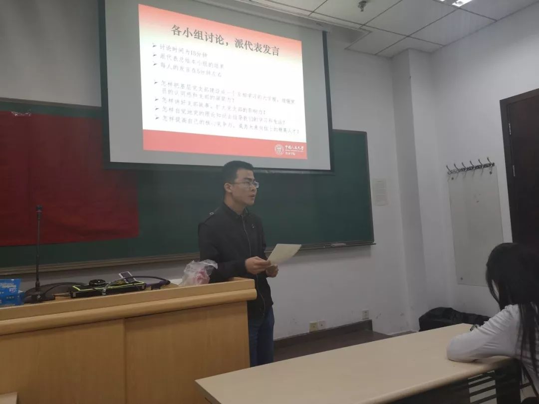 随后,与会党员分成小组,就支部建设与对外宣传、理论知识与社会实践等问题分别展开研讨。第一小组认为,党支部凝聚力的增强离不开支部成员相互了解,为人民服务的意识要通过实践活动才能增强。支部成员应当从提高党员服务意识、规范组织生活和创新支部活动形式入手,共同把基层党支部建设成一个互相学习的大公司。第二小组将“讲好支部故事”概括为“外部活动、内部宣传”与“内部活动、外部宣传”,前者要求准确的上传下达,后者强调党支部的形象塑造。第三小组提出要用党的理论知识指导学习生活,就要认真学习党的最新理论知识,牢记实事求是的校训,虚心向人民群众学习。