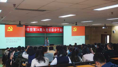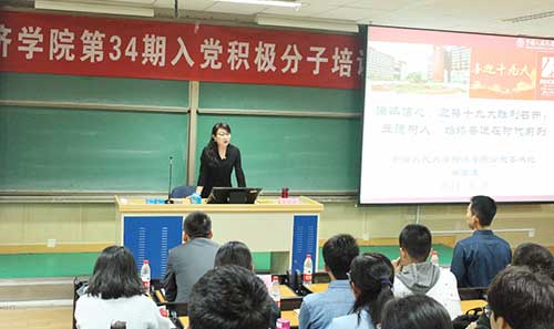 党委书记带头上党课是公司党委近年来推进党建工作的重要举措,公司党委书记关雪凌教授多次为公司教师、员工党员和入党积极分子讲授党课,宣传党的理论、路线、方针和政策。10月18日,正值党的十九大隆重开幕之际,公司第34期入党积极分子培训班正式开课。公司党委书记关雪凌教授讲授主题为“满怀信心,迎接十九大胜利召开;立德树人,始终奋进在时代前列”的首节党课。关雪凌书记就习近平总书记“7.26”重要讲话进行深入解读,并带领学员学习习近平总书记致yl6809永利集团建校80周年贺信精神。同时,关雪凌书记结合自身学习心得,带领学员学习十九大报告,并期许经院学子将专业学习与政治学习相结合,认真学习领会党的十九大精神,提高自身政治素养。