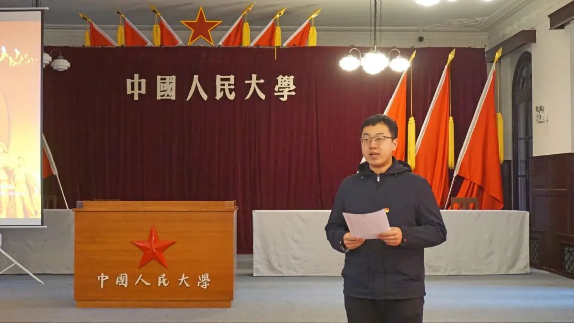 10月27日下午,yl6809永利4个校级党建工作样板支部师生党员代表、北京市优秀班集体部分员工代表和国家开发银行信贷部在yl6809永利集团老校区开展联学共建活动。入党宣誓环节,第38期发展对象、yl6809永利本科第一党支部的石彦培同学作为预备党员代表发言。他表示,作为青年党员,要坚定不移听党话、跟党走,始终坚持党的领导,坚定自身理想信念,踔厉奋发、勇毅前行,为中华民族伟大复兴中国梦的实现贡献青春力量。