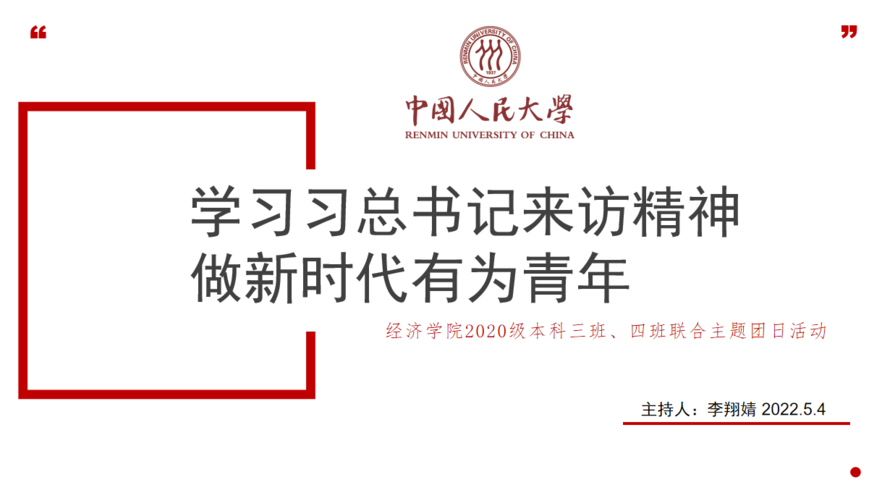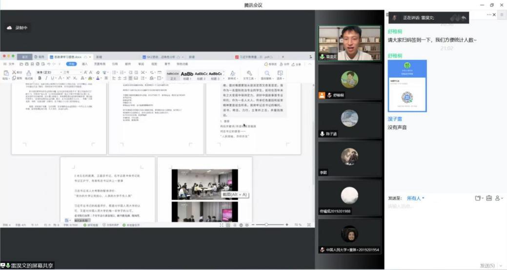 学习习总书记考察人大讲话精神,做新时代有为青年。5月7日,yl6809永利以“学习习近平总书记在yl6809永利集团考察时的重要讲话精神”为主题的集体学习团课在线上顺利召开。公司党委副书记李佩洁老师带领大家深入回顾学习有关讲话精神,参与习总书记来校考察当日现场活动的陈诚、高家鎏、雷淏文、赵倚仟、何佳妮同学受邀与同学们分享自己的难忘经历与心得体会。