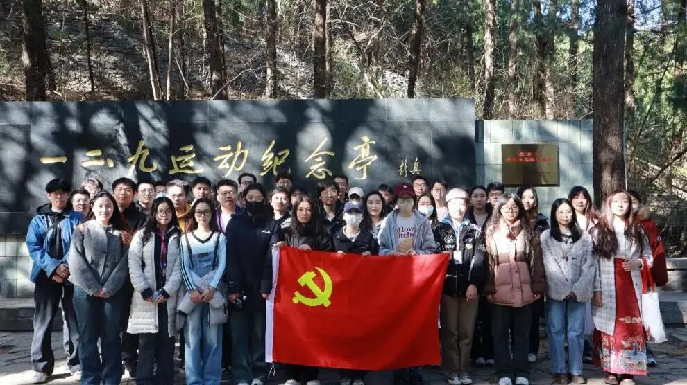 两校三院支部成员在“一二·九”运动纪念地集体合影