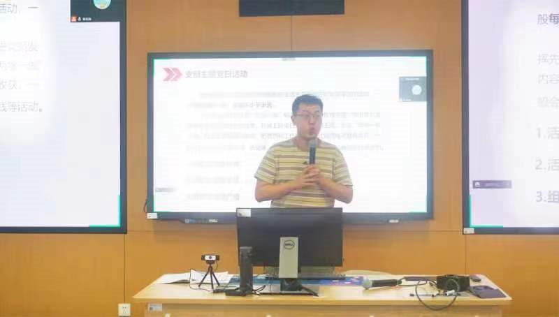 实践组组长孟博远介绍支部主题党日方案的策划并现场演示党员E先锋系统的使用方法。