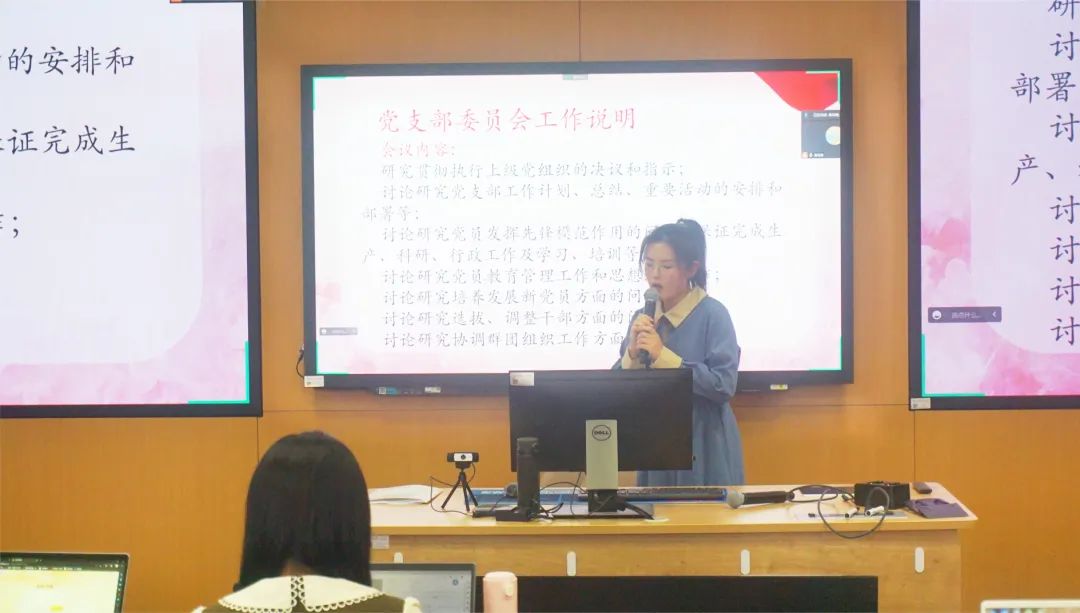 办公室组长李珍妮讲解了党费收缴流程和党支部经费申请使用规范,特别强调了相关工作中容易疏忽的细节要求。