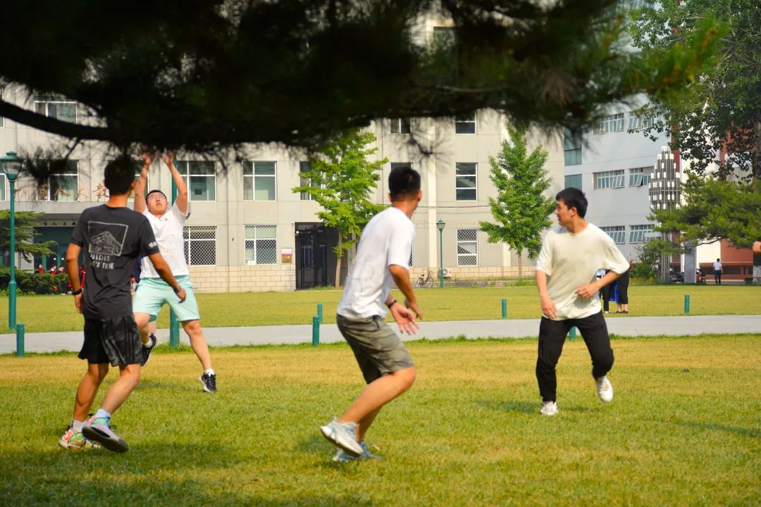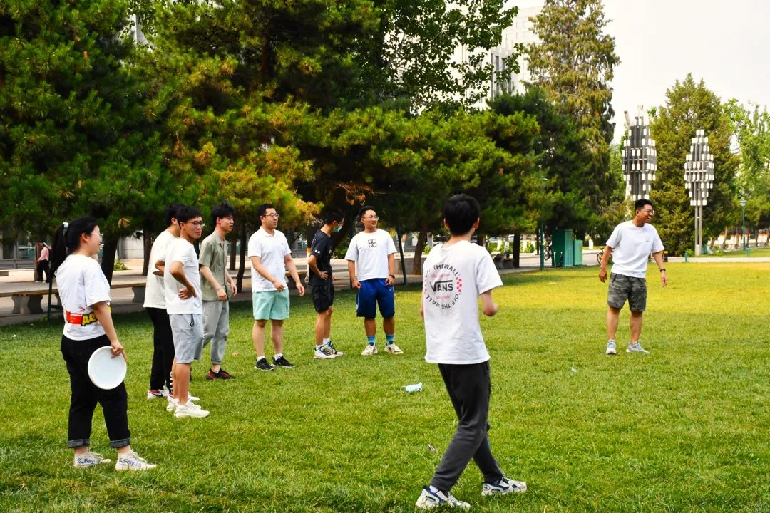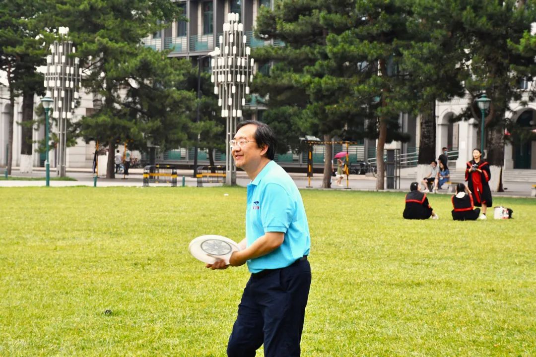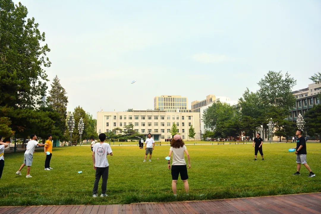 师生联动,你我同行,挥汗草坪。刘守英经理被草地欢乐的气氛吸引来。只见他抄起飞盘,来了一个远掷,动作娴熟,引来同学们一阵叫好。其他老师也循笑语而来,加入“战局”,很快与“战友们”打得火热。老师们的加入不仅调动了更多员工参与的兴趣,更为师生情谊增添了浓墨重彩的一笔。
