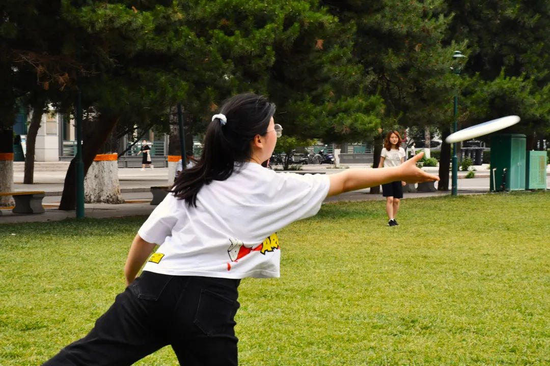最受同学们期待的体育活动,莫过于近期备受喜爱的飞盘了。飞盘的魅力就在于它兼具娱乐、社交和竞技属性,既有比较好的运动效果,能让人在运动当中收获释放多巴胺的快乐,也能促进朋友、团队之间的感情和凝聚力提升。