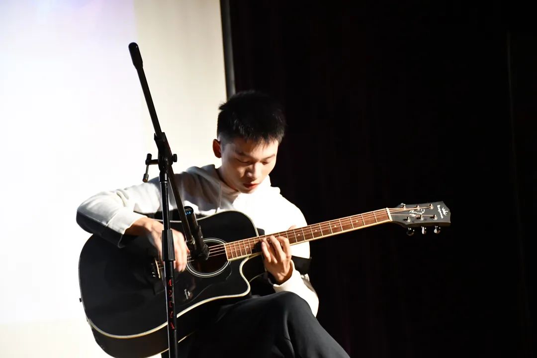 指轻弹,声悠扬。通过一曲吉他独奏《Wings~ Hoping for the Future》,翟国正将大家带入清新自在的境界。
