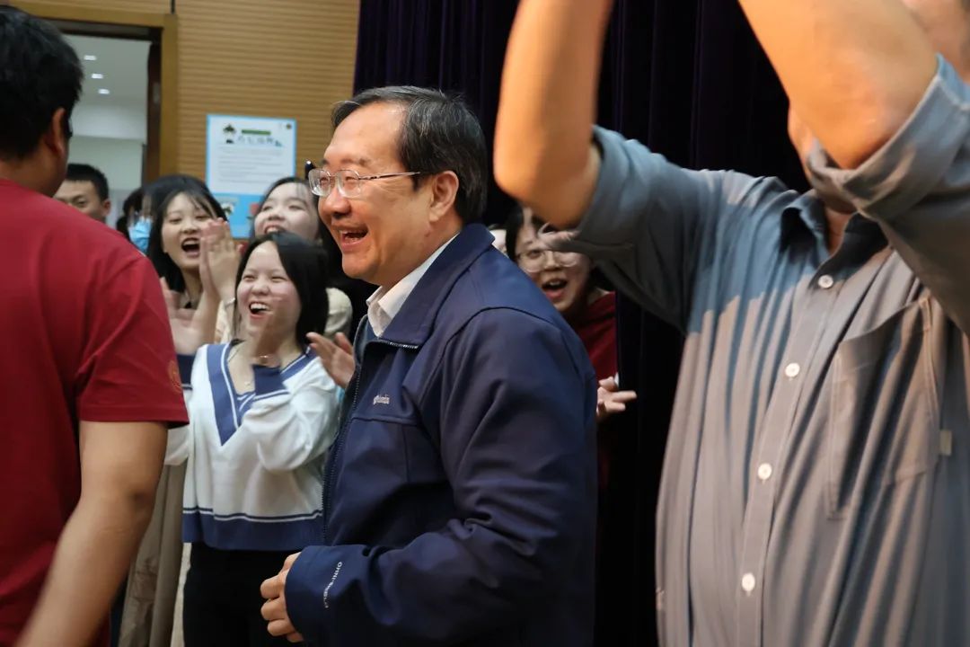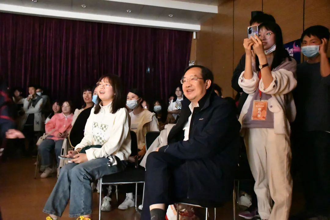 惊喜嘉宾刘守英经理的到来,将晚会气氛掀至高潮。《我的祖国》《洪湖水浪打浪》两首经典歌曲,引起全场大合唱。伴随着欢快热烈的气氛,全场师生脸上洋溢着幸福快乐的笑容。合唱过后,经理亲切地与晚会现场的演员、观众们合影,定格这一精彩瞬间。