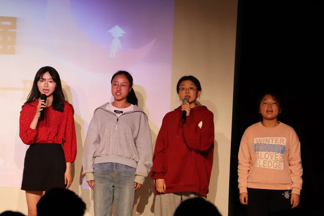 在主持人的带领下,8位同学踊跃参与到歌词飞花令的游戏中。各位选手强者交锋,不相上下,比赛一度进入白热化状态。最终,高跃玮同学以强大的歌曲积累取得游戏冠军。
