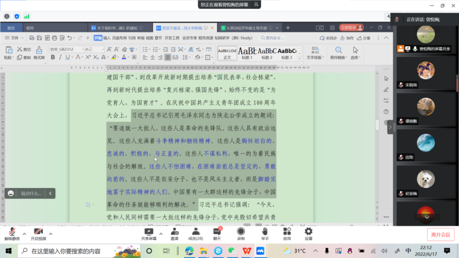 政治经济学硕士党支部通过线上会议开展第二场主题党日活动。本次活动由党支部书记曾悦梅主持,全体支部成员参会。