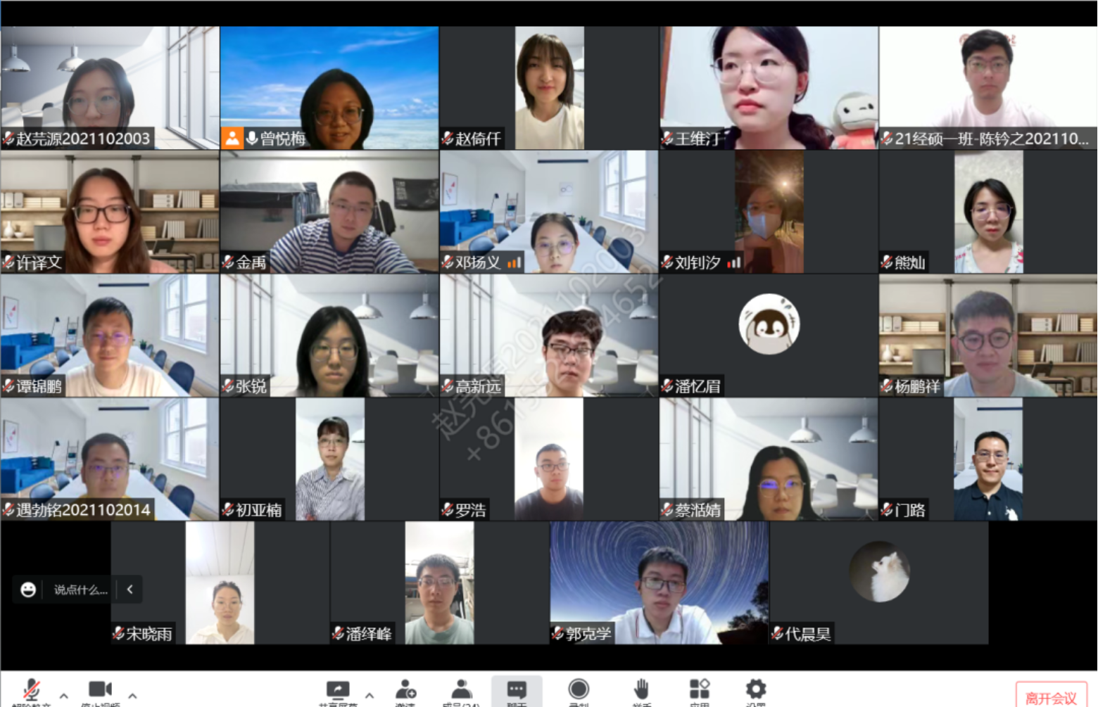 政治经济学硕士党支部通过线上会议开展第一场主题党日活动。本次活动由政治经济学硕士党支部书记曾悦梅主持,24名支部成员参会。