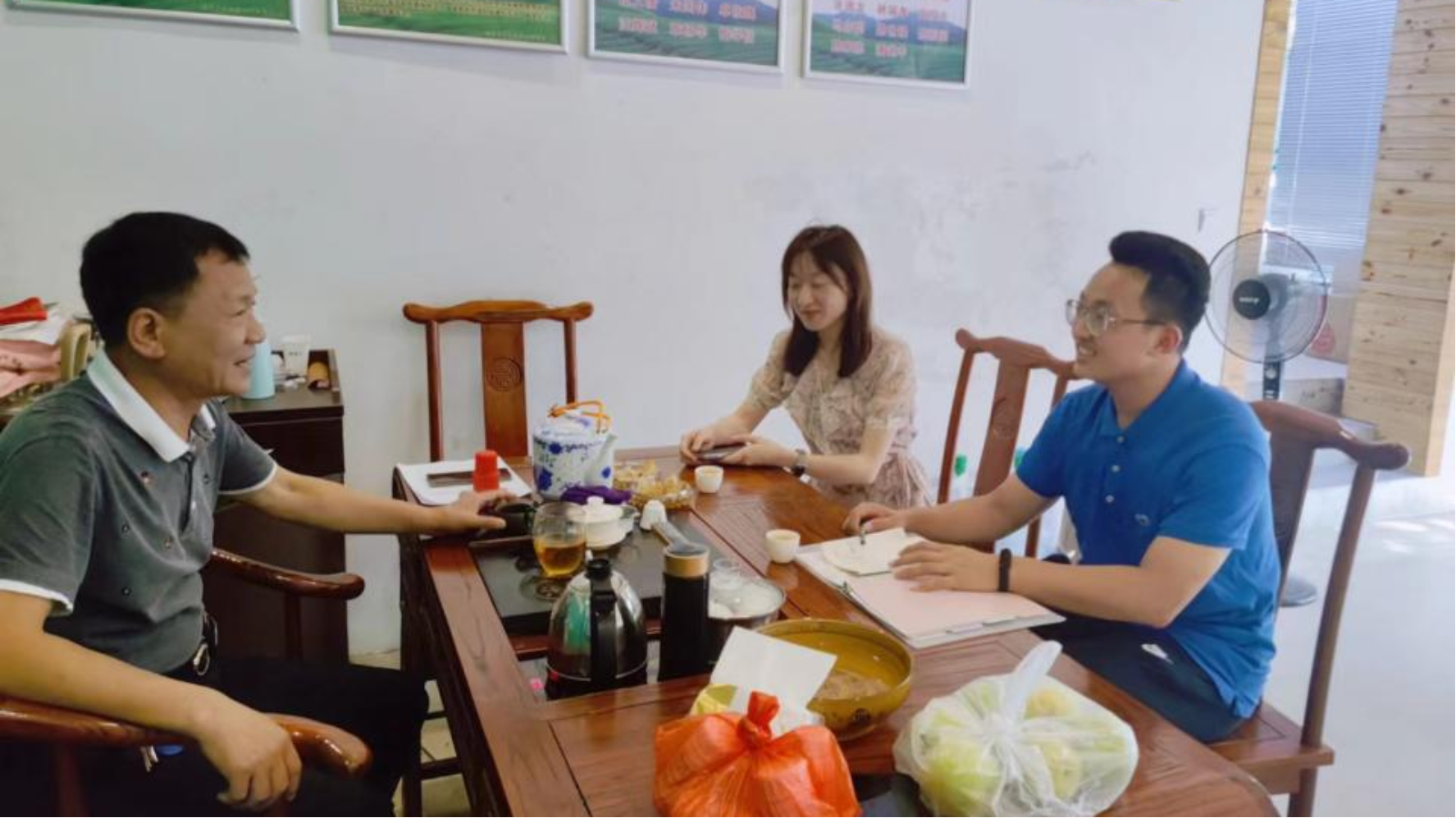 张志强(右一)与茶叶协会工作人员座谈