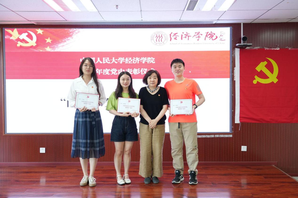 刘守英、王晋斌、孙文凯和胡霞同志分别为受表彰对象颁发荣誉证书。