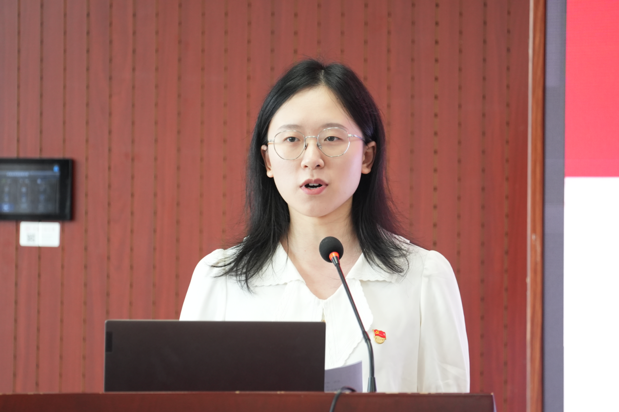 优秀党务工作者(党支部书记)代表杨心怡同志发言。她围绕“心中有光、肩上有责、脚下有路”三个关键词,总结两年间作为员工党支部书记的感受心得,表示要更加脚踏实地、踔厉奋发,团结带领党支部成员一同成长、共同进步。