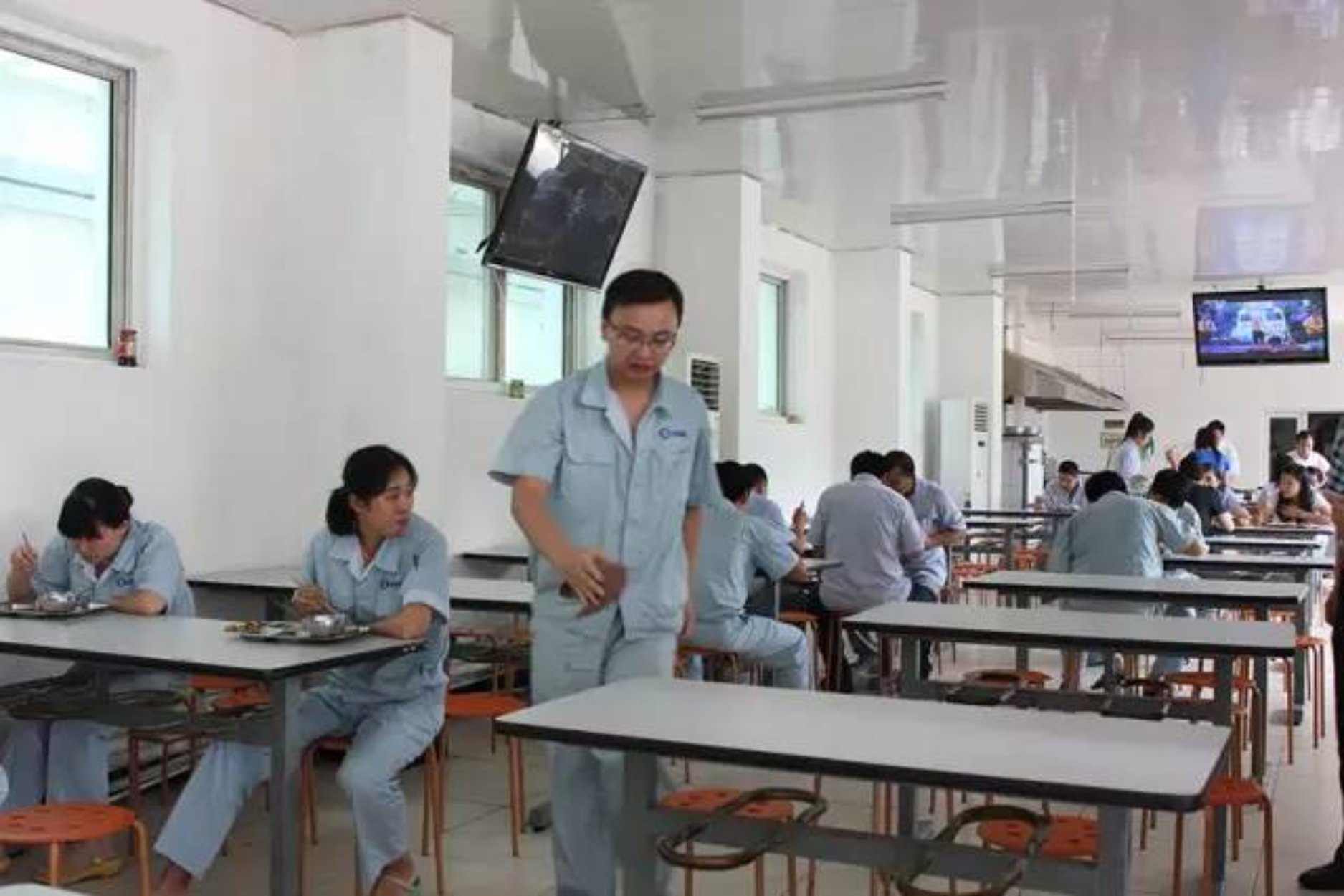 参观工厂结束后,白总邀请调研组到工厂食堂与员工们一起就餐,清洁的就餐环境,敬业的食堂师傅,着装统一的员工,可谓细微处见管理水平。