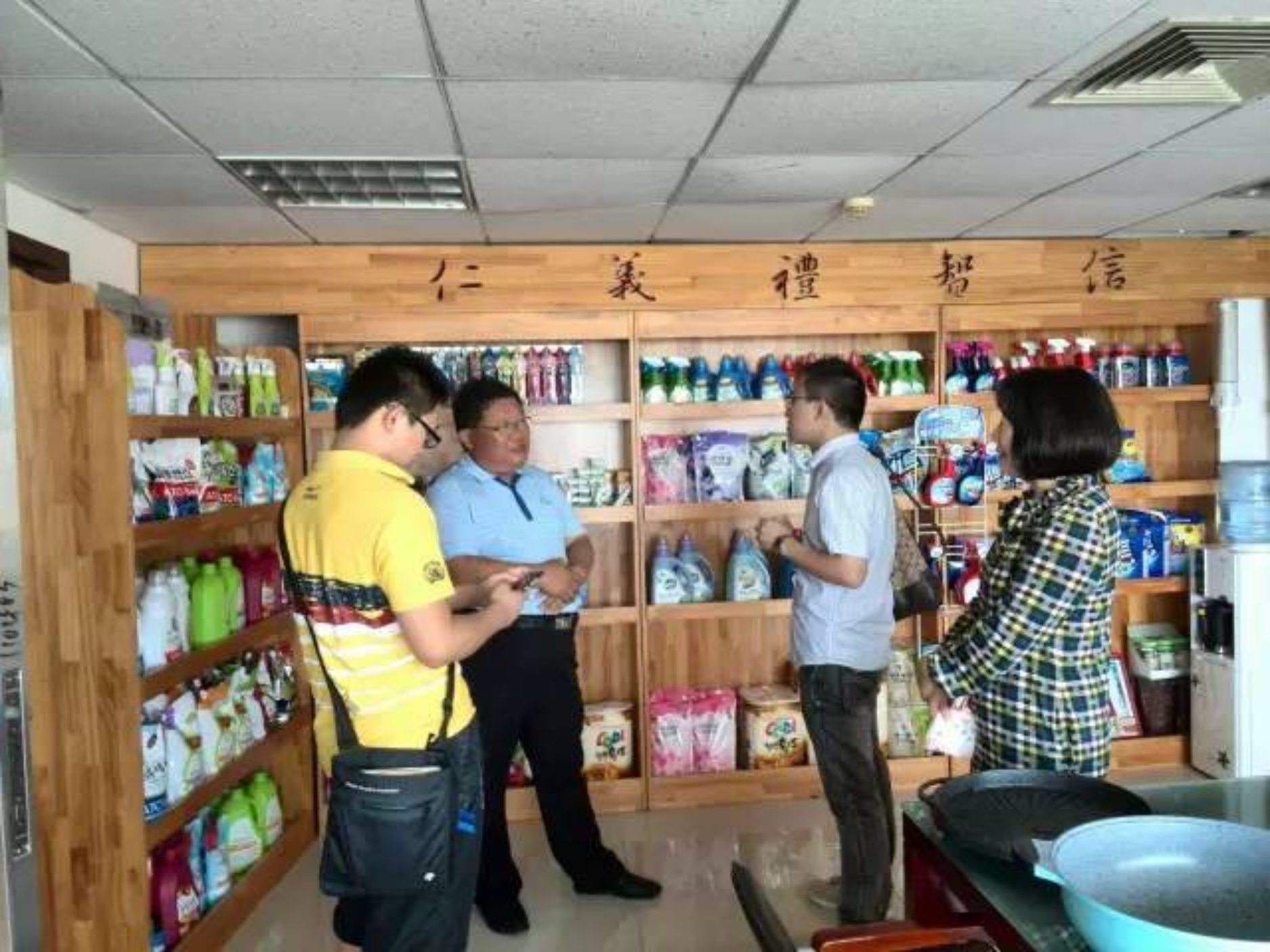 8月8日下午,调研组一行到达山东威海后,在关于我们员工、新大东刘本昌董事长的陪同下,调研组参观了新大东的广告标志、货物仓库、韩国居家文化体验馆和自营超市。