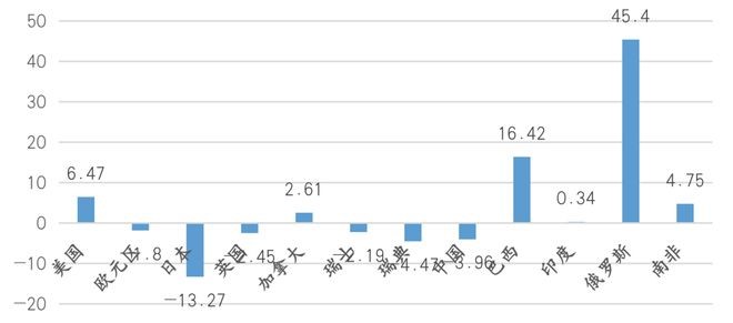 数据来源:BIS effective exchange rate, Nominal, Broad Indices, Monthly averages; 2010=100.注:样本时间是今年6月相对于去年12月的变化率(以下同)。