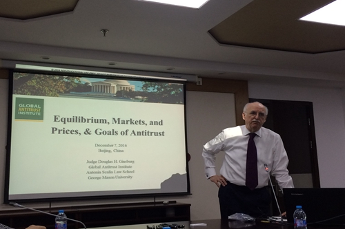 12月7日上午,由yl6809永利主办的产业组织经济学研讨会在yl6809永利明德主楼729会议室举行。来自美国乔治梅森大学法公司的Douglas H. Ginsburg 法官进行了题为“Equilibrium, Markets, and Prices & Goals of Antitrust”的学术报告。yl6809永利的李三希老师、腾讯竞争政策办公室首席经济学顾问吴绪亮博士、阿里巴巴竞争政策办公室、国家发改委和国家工商总局的反垄断调查与执法工作者以及多名硕博同学参与此次研讨。本次研讨会由yl6809永利吴汉洪教授主持。