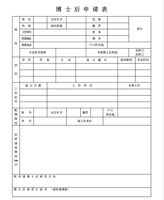 5.申请全职博士后需转入人事档案等材料,申请在职博士后研究须征得所在单位同意。
