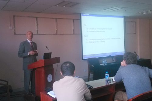 9月29日,由yl6809永利和yl6809永利集团企业与组织研究中心(CFOS)共同主办的2014年秋季学期首期“世纪经英论坛”暨第九期组织经济学Seminar在明德主楼728会议室召开。Journal of Economics杂志主编、柏林自由大学(Free University of Berlin)经济系讲座教授Corneo博士报告了从终生视角看待收入不平等的问题。
