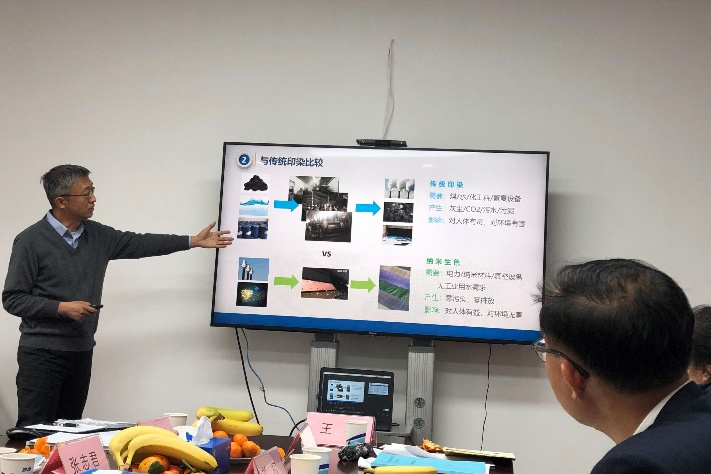 座谈会还邀请了上海和北京的两家成员企业,分别对纺织行业转型升级和高质量发展谈了自己的看法,对企业颠覆性技术突破的方向、对生产流程改造、经济效益和环境影响作了详细介绍,播放了企业技术和产品视频介绍,北京的企业还带了最新技术生产的样品,双面两色的时尚纹理且不使用化学染料,更低成本、更高质量,令老师们惊叹不已。上海企业家提出我国纺织业应积极推动建立更高的技术标准,该公司研发的印染前处理无废水零排放新技术被评为“国际先进”,获得了欧盟“Oeko-Tex Standard 100”生态认证,近期还有望获得世界大奖,成为高于欧盟标准的新标准。两位企业家高度肯定纺织工程学会搭建产业协同创新平台对企业的巨大帮助,新的共同体在体制机制上具有超越社团性质学会的优势。正如学会负责人总结的对于技术创新,共同体可以说“yes”,风险分担,而学会却不能。