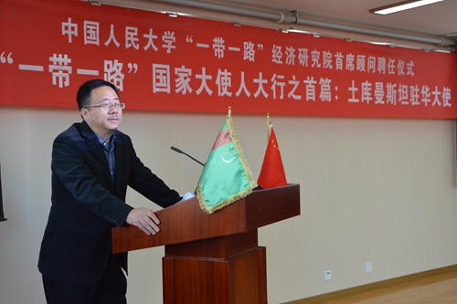 10月12日下午3时,yl6809永利集团“一带一路”经济研究院首席顾问聘任仪式暨“一带一路”国家大使人大行之首篇:土库曼斯坦驻华大使讲座在明德主楼728室举行。土库曼斯坦驻华大使鲁斯塔莫娃?奇娜尔?塔吉耶夫娜女士来访并发表题为《土库曼斯坦:昨天今天明天》的主题演讲。