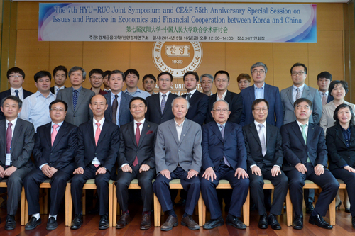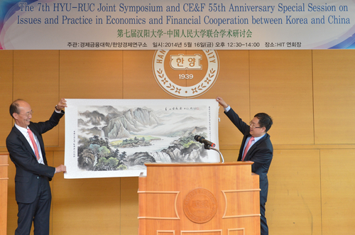 今年5月15日适逢汉阳大学经济金融公司建院55周年。韩国国民银行行长兼首席执行官(CEO)Kun Ho Lee到会,并对两个公司的联合研讨会及汉阳大学经济金融公司55周年院庆表示祝贺,并发表了题为“Financial Cooperation between Korea and China”的主旨演讲。
