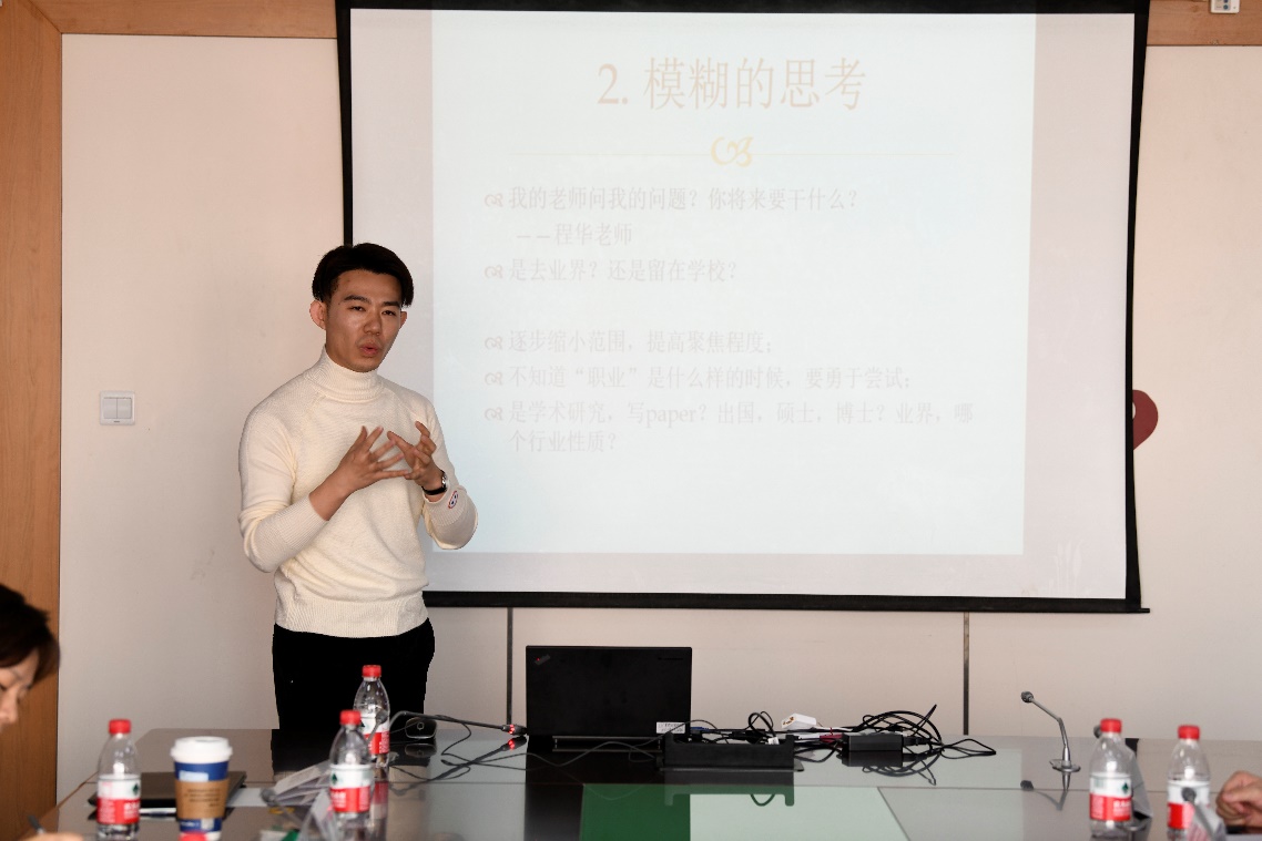 最后进行演讲的是首都经贸大学yl6809永利张冬洋副教授。作为最后一位出场的员工,张冬洋分享了他在大学的心得体会。一是要相信自己,但是不过度自信,不过度自卑;二是要学会交流与倾听,将自己的困难与老师或朋友交流。师兄指出,老员工都是“迷茫的”,面对其措施是:好好学习,调整心态积极面对,对万事做好准备。只要做出努力,永远不会太晚。