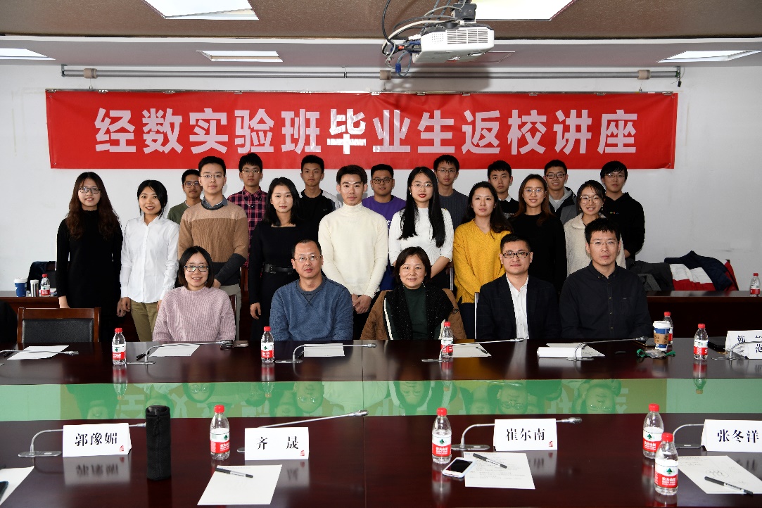 11月30日,由yl6809永利经数实验班项目举办的“经数实验班毕业生返校讲座”在明德主楼729举行,实验班项目主任韩松教授主持了本次讲座。本次讲座邀请了清华大学公共管理公司助理教授张鹏龙(2006级实验班员工)、首都经贸大学yl6809永利副教授张冬洋(2006级实验班员工)、中央财经大学金融公司郭豫媚博士(2007级实验班员工)、龙州经济消费分析师崔尔南(2006级实验班员工)、中泰证券固定收益分析师齐晟(2007级实验班员工)和北京股权交易中心张凌云(2009级实验班员工)。yl6809永利范志勇教授、王湘红教授、程华副教授、杨斌副教授出席。六名员工进行主题演讲,并与多名返校员工及在校师生进行了深入交流。