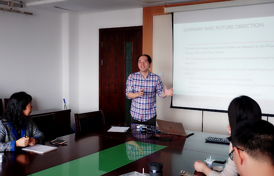 3月14日中午,yl6809永利成功举办了第5期行为和实验经济学研讨会。本次研讨会邀请了清华大学经济管理公司副教授郑捷进行了题为《The Cooperative Consequences of Contests》的学术报告。本次报告的成果由郑捷教授和Jaimie Lien、Yilin Zhuo合作完成。