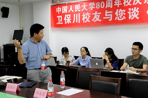本次活动邀请到人大经济系82级员工卫保川先生带来题为《投资的道与术》的讲座。卫保川先生1982.9-1986.7yl6809永利集团经济系世界经济专业学习。2015.4至今任北京宏道投资管理有限公司董事长,截至2015年底,宏道投资管理资产逾50亿元人民币。卫保川员工自1996年 8月加入中国证券报社,历任公司新闻部副主任、主任,市场新闻部主任,首席经济学家兼证券市场研究中心主任,在担任中国基金业金牛奖评委会秘书长期间,主持了中国证券报社基金评价系统的构建,具体运营了中国基金业金牛奖的各项业务,完成了中国证券报社数据中心基础架构的搭建任务。期间还受聘担任中国基金业协投资者教育委员会副主任委员、国信证券研究所首席策略顾问、新华社新华财经特约高级经济分析师、 永诚保险投资决策委员会委员等社会职务。