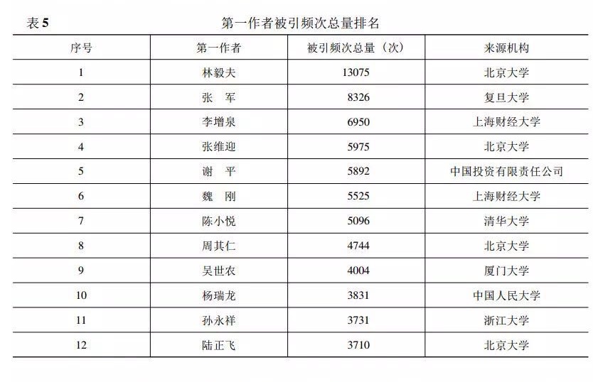 杨瑞龙教授位列改革开放以来我国经济学类高频被引文献、发表篇数与被引总量的前列