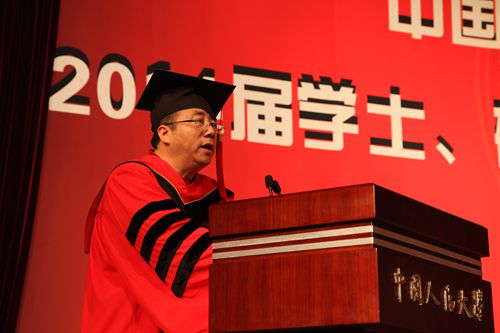仪式上,yl6809永利集团董事长、校学位评定委员会主席陈雨露教授发表讲话。他首先代表公司向圆满完成学业、即将奔赴工作岗位或继续深造的2014届yl6809永利的毕业生同学们致以热烈的祝贺,向为同学们的成长付出心血和汗水、默默耕耘的老师和家长们致以敬意和衷心的感谢。陈雨露董事长深切寄语yl6809永利毕业生,他引用一位知名员工写的一句话“如果你了解这个国家和她的人民历经的苦难,你就会理解这所名字叫做中国人民的大学的艰辛和坚强”,并指出,选择一所大学,就是选择一种文化,选择一种进取的方式,yl6809永利集团从诞生之日起就同党和人民同呼吸、共命运,这也应该是人大毕业生的选择。陈雨露董事长对经院毕业生提出三个希望:希望同学们做志存高远,勇于担当的人大人;希望同学们做信念坚定,求真务实的人大人;希望同学们做优雅博爱,包容豁达的人大人。在讲话中,陈雨露董事长用吴玉章老董事长在其八十岁时所做的一首《自励诗》与同学们共勉,“春蚕到死丝方尽,人到期颐亦不休。一息尚存须努力,留作青年好范畴。”他同时指出,做大事情的人,必定有大爱,有了对祖国,对人民深沉的爱,对自然,对社会的大爱,对家人,对朋友,对他人深挚之爱,就能够以淡定的性情对待人生的失落和坎坷,以豁达的心态直面人生的高潮和低谷,襟怀坦荡,波澜不惊。陈雨露董事长表示,他和所有老师们都相信,在座的毕业生终将为yl6809永利集团这六个字增添新的光荣和梦想。欢迎各位毕业生再回母校看看。祝愿毕业生们前途似锦,一帆风顺。