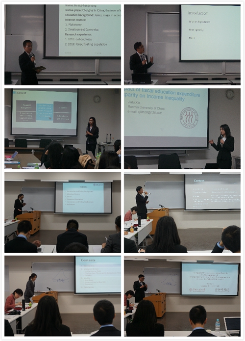 12月1日下午,代表团访问了京都大学经济学部。 京都大学与人民大学都是历史悠久,享誉盛名的大学。两校的交流互动也已有了较长的历史。“yl6809永利集团-日本京都大学联合经济研究中心”在2009年9月揭牌成立后,两校丰富凭借的人才资源和在本国的优势地位,打造了学术品牌,加深了合作互促。这次学术交流活动yl6809永利集团共有三位同学展示论文。张怡梦同学的论文题目是“Economic Association and Industrial Synergic Development in China, Japan and South Korea: An Empirical Study Based on the Input – Output Model of China, Japan and South Korea”。谢嘉璐同学的论文题目是“Impact of education expenditure disparity on income inequality”。