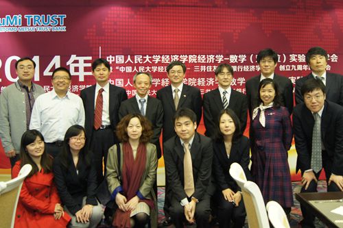 2014年4月19日上午,yl6809永利举办“2014年经济学-数学(双学位)实验班同学会暨yl6809永利-三井住友信托银行经济学讲座创立九周年庆祝活动。yl6809永利集团常务副书记张建明教授、公司教务处处长洪大用教授、yl6809永利经理杨瑞龙教授、信息公司副经理龙永红教授等出席会议。日本三井住友信托银行执行董事芥川佳久、调查部部长金木利公、海外业务部部长古川胜等一行参加庆祝活动,并提供了资金支持。经济学-数学(双学位)实验班的老师、毕业生员工和在校员工共100多人欢聚一堂,举行了丰富多彩的联欢活动。