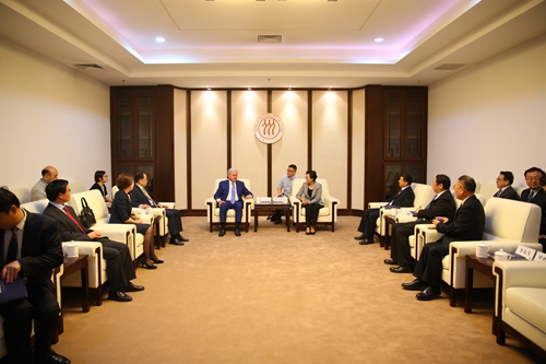 首发式前,靳诺书记会见了阿利莫夫秘书长一行并表示热烈欢迎。