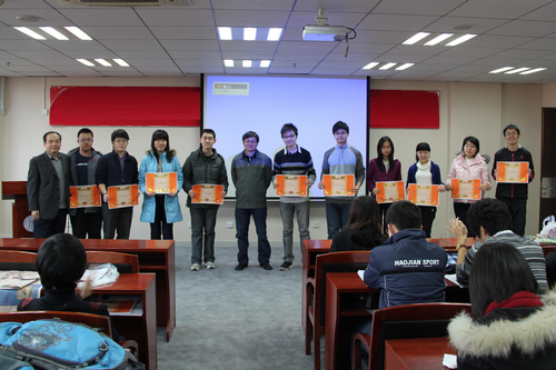 随后,在热烈的掌声中,杨瑞龙经理向获奖同学颁发了特殊贡献奖与核心骨干奖。之后明占生老师、王宝奎老师分别颁发了突出贡献奖、杰出表现奖和优秀团员奖。