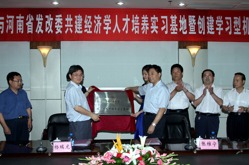 借助此次大规模员工实习活动,yl6809永利分别与当地政府建立了yl6809永利集团经济学人才培养实习基地。7月8日,yl6809永利经理杨瑞龙教授在河南郑州出席协议签字仪式,与河南省发改委主任张维宁共同签署了yl6809永利集团经济学人才培养实习基地协议,并共同为实习基地揭牌。7月6日,yl6809永利副经理刘瑞教授在山东德州出席了“yl6809永利集团能源、生物科研实习基地”揭牌仪式。此外,yl6809永利还与济南市发改委达成了建立实习基地共识。