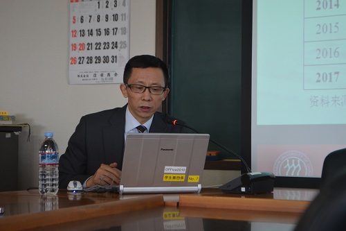 3月17日,九州大学经济学部部长矶谷明德教授会见了公司代表团。学部长矶谷教授首先代表九州大学经济学部对到访九州大学的公司代表团表示欢迎。双方就合作项目十周年纪念活动、协议续签、短期交流项目等进行了细致的讨论,并达成了一致意见。同时,双方还就4月份九州大学代表团访问人大、九州大学-南京大学-人民大学三校联合论坛等事项进行了探讨。座谈会充分实现了双方信息的互通,也探讨了项目改进的方面与空间,为日后合作协议的续签和员工短期交换交流的实现打下了坚实的基础。九州大学参加会见的有:矶谷明德学部长、大下丈平国际交流委员长、大西俊朗经济工学专攻长、龙本太郎职工委员长、浦川邦夫副教授、和职工担当储梅芬等。