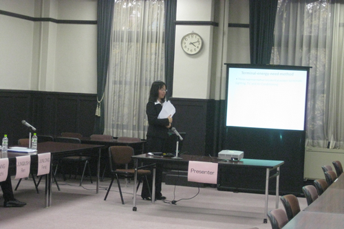 图为yl6809永利员工任君秋拾在早大宣讲自己的论文“A Study of Chinese Residential Electricity Demand Elasticities”
