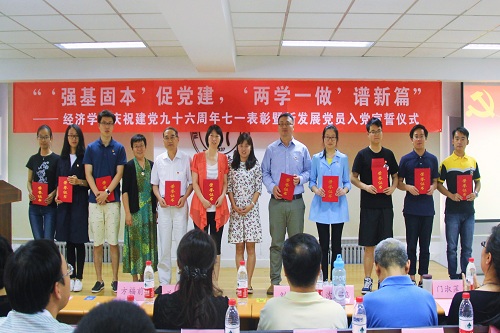 新发展党员代表2015级国民经济管理本科班党支部高蕾发言。她表示,作为一名党员,要把入党誓词作为终身追求,向组织宣誓,全心全意为人民服务。同时,新发展党员更要以优秀党员为榜样,向更高水平看齐,完善自我,提高自我,不辜负党和人民的信任。