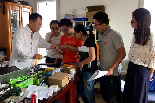 座谈期间,调研团还切身体验了一次客流量计数设备的使用过程,将设备绑定微信,打开微信-查看我的设备选项,即可看到绑定设备所测定的人流量变化。这一功能得以实现的便利性,让调研团纷纷惊叹不已。随后,调研团队徜徉于企业产品的产品展览馆、研发团队工作室,惊叹于高新技术的神奇,见证了从小小的电子元器件到红外线检测设备、Wi-Fi探针等高新技术设备的变化过程。