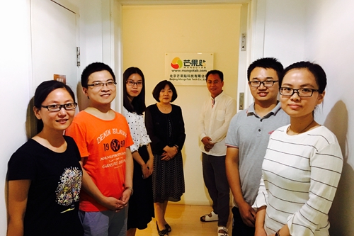 9月7日下午,yl6809永利集团中小企业国际合作案例中心调研团再次来到位于北京市上地海淀区悦MOMA科技园区的北京芒果贴科技有限公司。从5月起,调研团队已先后对北京芒果贴科技有限公司进行过两次考察,通过了解企业发展历史、企业组织结构等方面,对企业发展现状有了初步的掌握。本次走进芒果贴公司,旨在进一步了解企业发展情况,补充采集中小企业“走出去”的案例素材。调研团由yl6809永利胡霞老师带队,博士研究生丁浩、李文杰,以及硕士研究生于玉涵、杨倩影、郭锐五位同学参加。