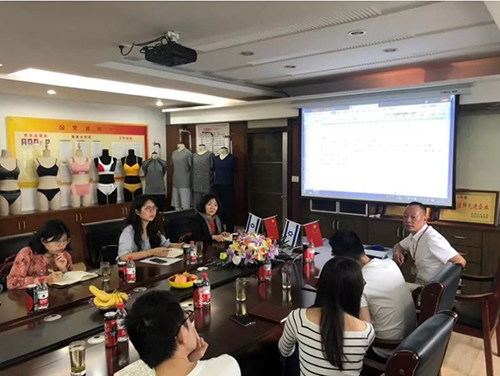 6月21日上午,考察团赴浙江天派针织有限公司(后简称“天派针织”)开展调研,并受到了天派财务负责人赵黎明总监及董事长助理陈群女士、伍银女士的热情接待。赵黎明总监毫无保留地向考察团介绍了天派针织的发展历程、主营业务及未来规划,并分享了中小企业应对贸易战的方式方法。成立于2009年的天派针织是一家以研发设计和生产无缝内衣系列产品作为其主营业务的全球性企业,现有员工数千名,日产能20余万件以上,产品远销美国、加拿大、英国等海外中高端市场,现已与券商签订上市协议,正式进入IPO流程。企业发展驶入快车道主要得益于2010年开始与以色列知名服装龙头企业Delta Galil搭建了合作桥梁,公司在以色列知名设计师的引领下组建了完整的研发团队,同时自身拥有对产品品质、货期和服务的超高标准,因此天派针织有能力从维密、CK、华歌尔等众多国际大牌处获取源源不断的订单。企业共设6个生产厂区,实现了独立客户和从A到Z环节的独立运营,同时积极响应供给侧结构性改革,牵头数十家中小企业联盟打造国际无缝产业园,通过产业集群抱团释放产能,综合利用有限资源来降低成本,以实现出口型时尚针织产业综合体的企业定位。