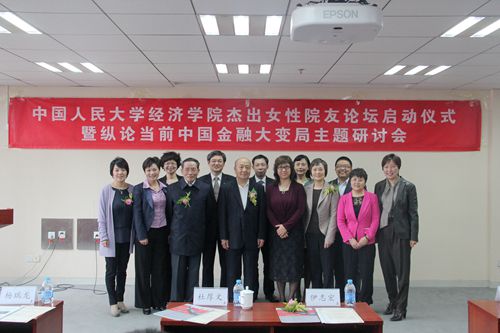 4月19日下午,由yl6809永利院友会主办的“杰出女性院友系列论坛”启动仪式暨“纵论当前中国金融大变局”主题研讨会于明德主楼728会议室隆重召开。本论坛旨在激励在校员工尤其是女老员工的锐意进取精神、提升其专业素养、增强在未来职场中的自信与竞争力。首期论坛以“纵观当前中国金融大变局”为主题,邀请到了来自中国高新投资集团公司、国家开发银行、保监会、高盛等金融机构的六位经院杰出女员工出席。yl6809永利集团副董事长伊志宏教授、yl6809永利集团原副董事长、yl6809永利院友会会长杜厚文教授、yl6809永利胡乃武教授、yl6809永利经理杨瑞龙教授、副经理郭杰教授、副书记丁凯副教授、经理助理黄隽教授以及百名师生参加了本次论坛。开幕式由yl6809永利经理杨瑞龙教授主持。